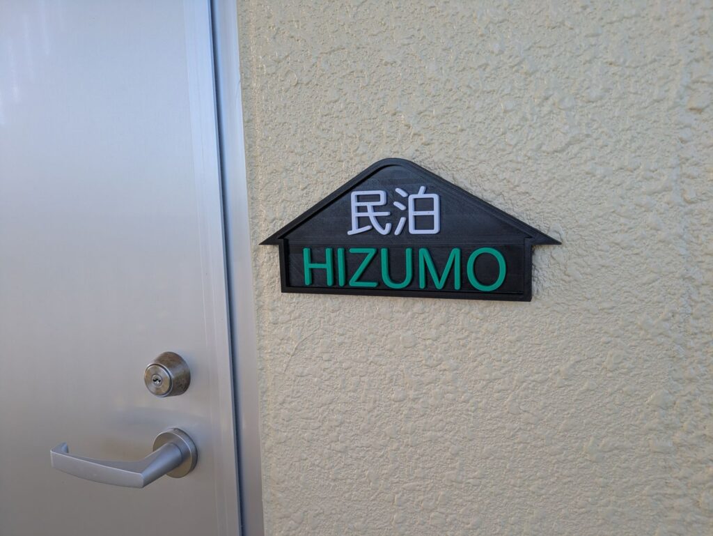 3Dプリンターで「民泊HIZUMO」の表札を作りました。